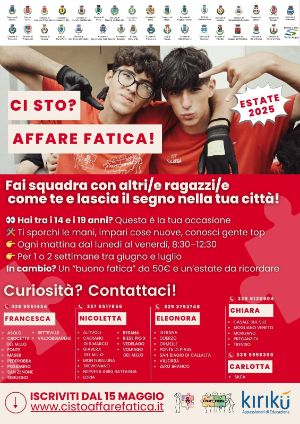 Dal 15 maggio 2025 dalle ore 12:00, cliccando nel sito https://cistoaffarefatica.it/,sarà possibile iscriversi al progetto "CI STO? AFFARE FATICA!".